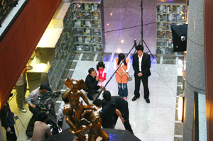 촬영을 위해 40여명의 대규모 스텝진과 “불멸의 이순신”의 이순신 역의 탤런트 김명민씨와 “한밤의 TV 연예” MC인 남상미씨가 청아공원을 방문. 추모1관 중앙홀에서 열연하였다.